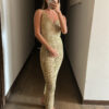 Vestido amarillo pastel, de tirantes, ecote en v, con olanes